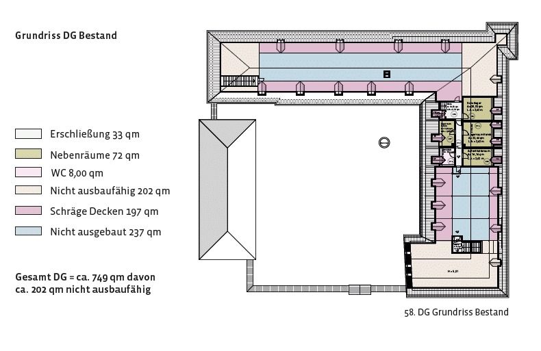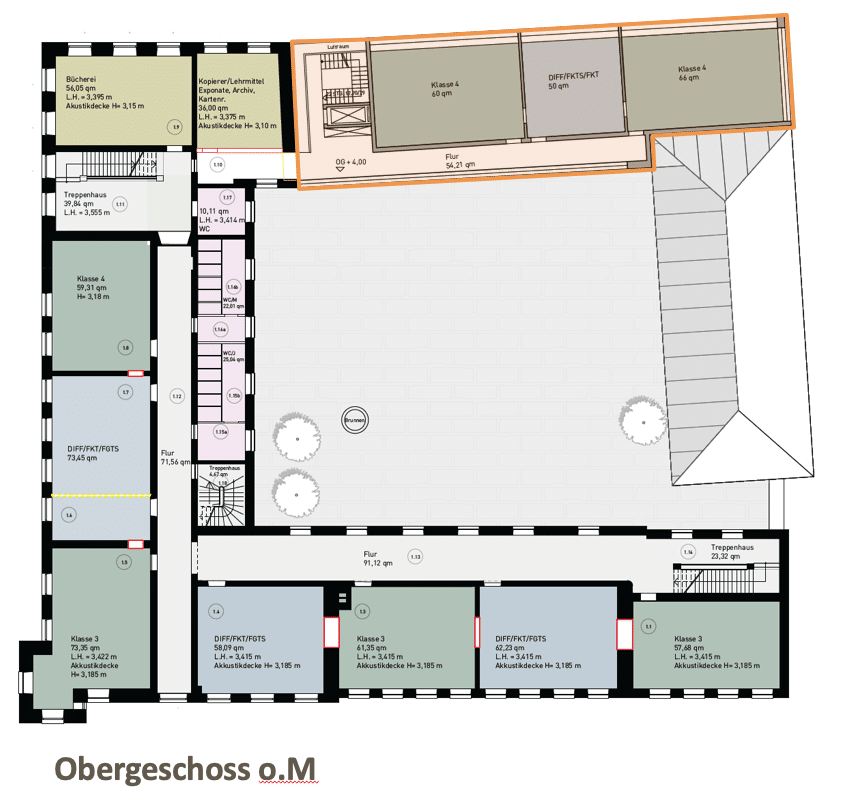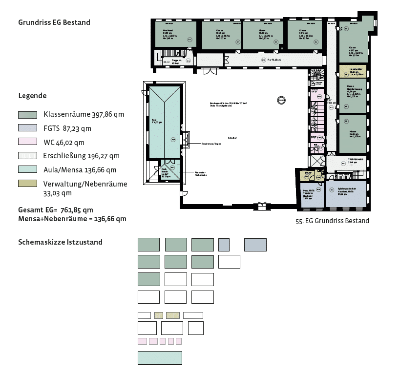 Im Rahmen einer Machbarkeitsstudie analysierten wir das denkmalgeschützte Gebäude und entwickelten verschiedene Varianten, um den erhöhten Raumbedarf abzudecken. Dabei sind wir behutsam mit dem Bestand umgegangen und haben ihn angemessen weiterentwickelt.